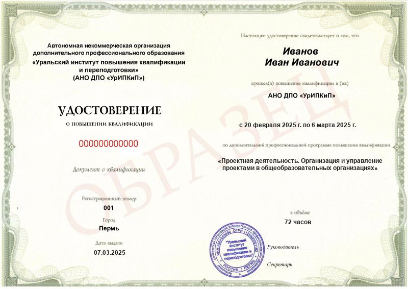 Заполненные образцы выдаваемых документов есть в описании учебных курсов и на странице «Лицензия. Документы», а также на главной странице официального сайта АНО ДПО «УрИПКиП».