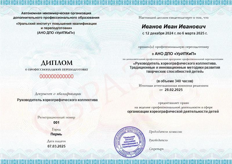 Обзор программы профессиональной переподготовки «Руководитель хореографического коллектива. Традиционные и инновационные методики развития творческих способностей детей» с присвоением квалификации «Руководитель хореографического коллектива»