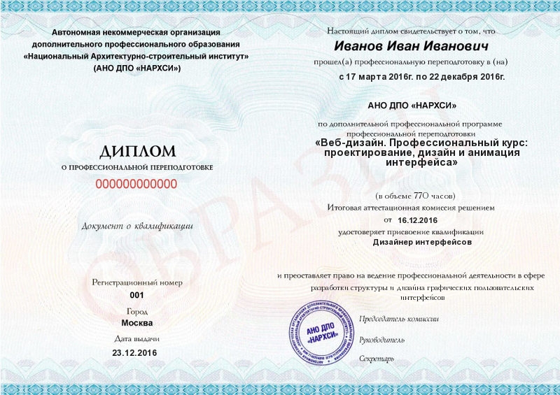 - Образец диплома о профессиональной переподготовке.